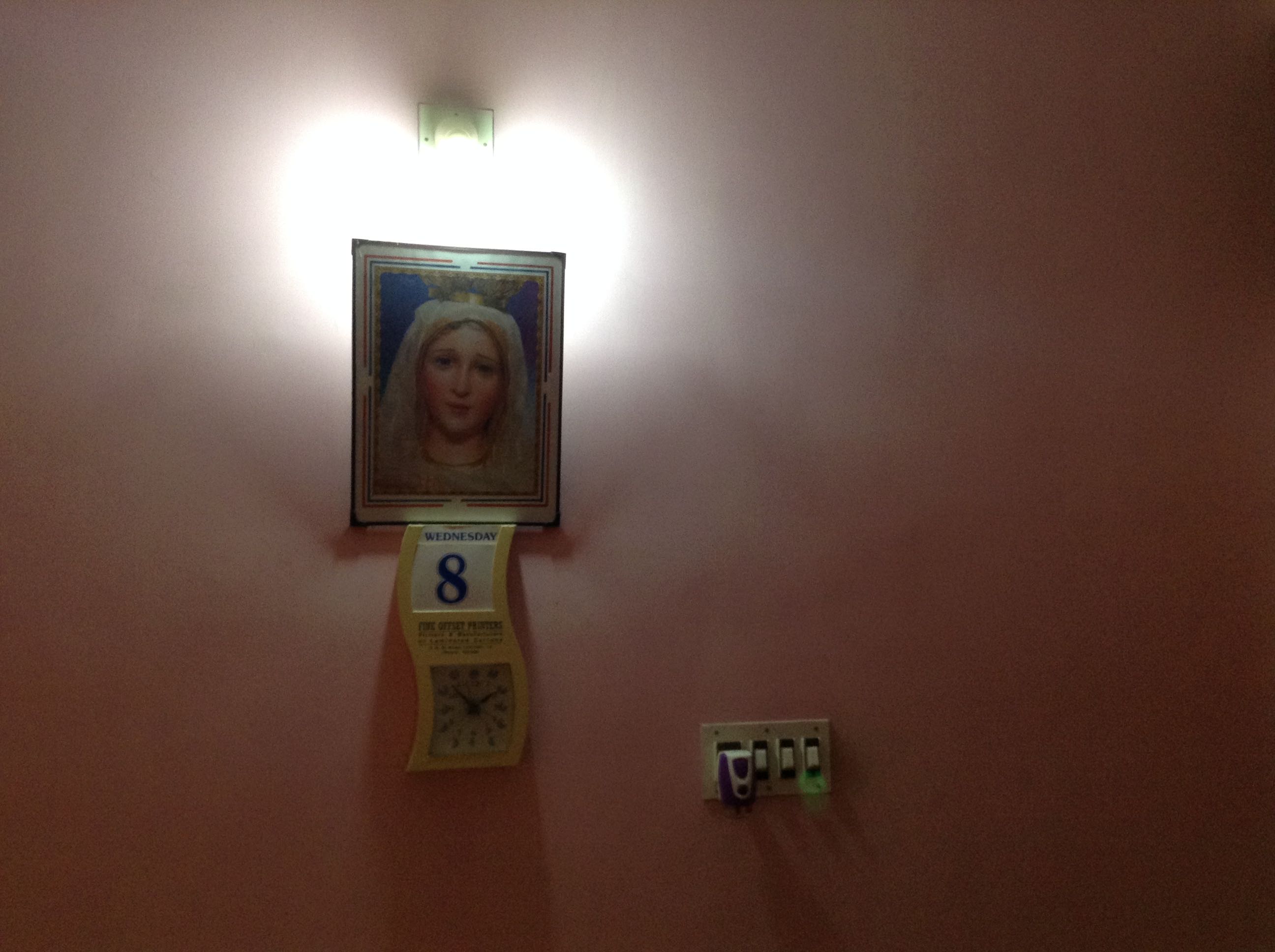 Il fait nuit noire sur Palace road, dépourvue de trottoirs. Il faut esquiver la nuée de rickshaws, voitures, cyclistes et piétons avant d’obliquer vers un vaste temple hindou. Des centaines de lampes à huile vacillent dans le noir, des fidèles drapés de coton pénètrent au son du tambour et des pétards dans les enceintes sacrées qui me sont interdites. Mystère de cette sacralité sensuelle, envoûtante et propice au « dérèglement de tous les sens », des rites dionysiaques qui ont fait perdre la tête à plus d’un voyageur[13]. Comme l’affirme un psychologue indien, « il y a profondément en tout hindou, une image du monde où dominent le thème de la fusion en l’absolu et le désir de fuite vers une divinité à la fois accueillante et terrible, maternelle. »[14] Le quartier suivant, dédié à Allah, semble mettre un peu d’ordre dans ce délire fusionnel, avec sa verticalité monothéiste à laquelle Bouvier s’était accroché à Ceylan, par l’entremise d’une épicière musulmane qui, elle au moins, ne versait pas dans la magie noire. Quant aux habitants de Fort Kochin, regagné au terme d’une longue marche, se sont des Chrétiens, catholiques pour la plupart. Dans ma chambre, au rez-de-chaussée d’un minuscule « homestay » familial, une image sulpicienne de la Vierge orne le mur au-dessus de l’horloge (présente dans les églises mais absente des temples hindous, intemporels). J’entends, à travers la porte, le murmure des neuvaines récitées avant le repas. On se retrouve entre soi, en somme.