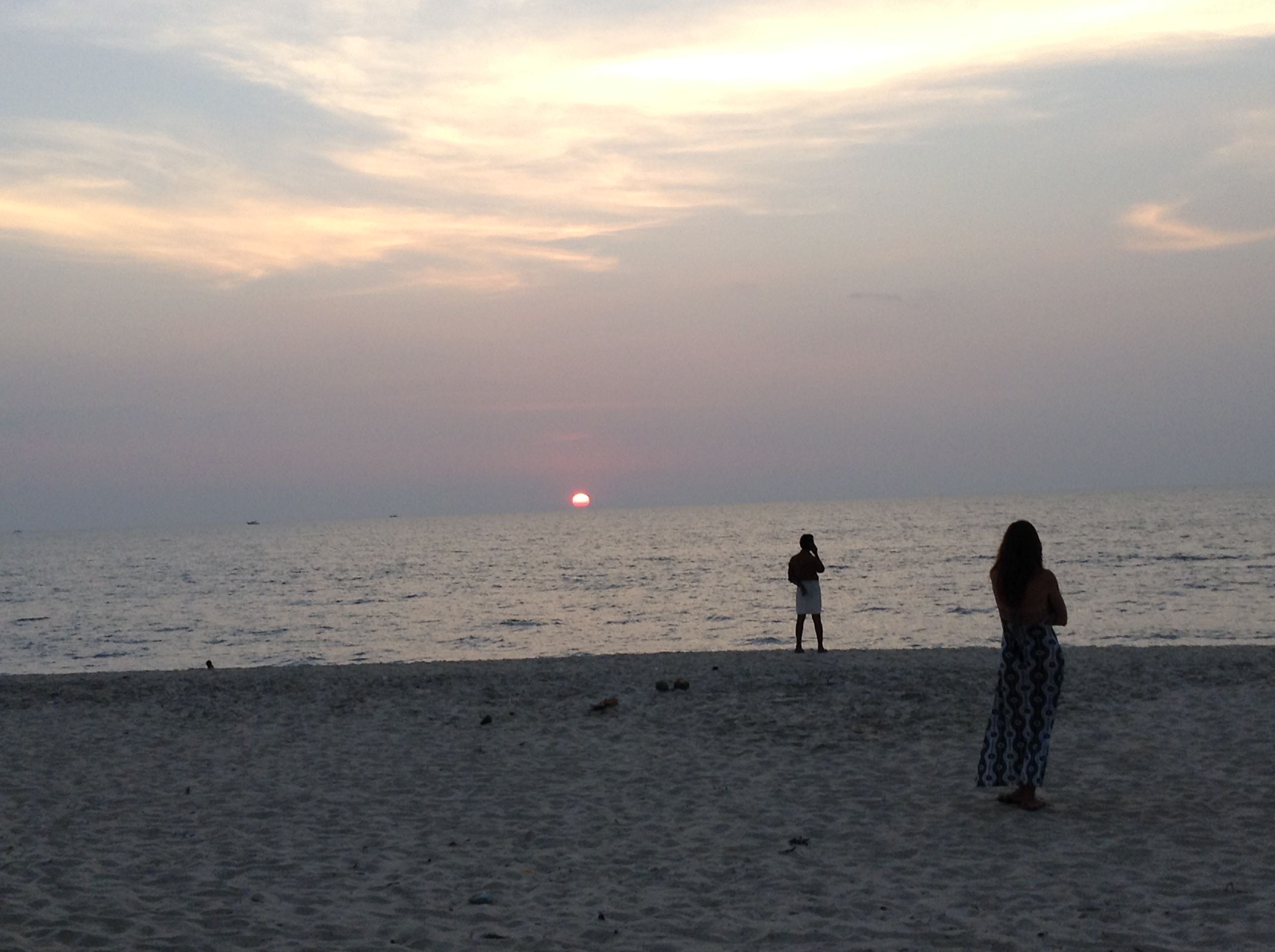 L’ambiance est électrique, la foule très dense, l’alcool semble couler à flots et cela sent un peu le chanvre. Nous restons prudemment sur les sentiers surélevés, alors que deux Français fraîchement arrivés se précipitent dans la mêlée, appareil photographique en tête. Même si les agressions semblent rares au Kerala (et la gentillesse presque troublante), notre hôte, très inquiet, tente de dégager ces deux-là de la foule en les enjoignant de rester à distance. Les Français partis, nous aurons droit à des confidences sur son rôle difficile auprès de ses diables de touristes, dont les agissements lui semblent parfois mystérieux. « Et ce sourire qu’on leur vante et qu’ils demandent ! Je n’ai pas toujours envie de sourire, moi, j’ai des soucis aussi ! ».