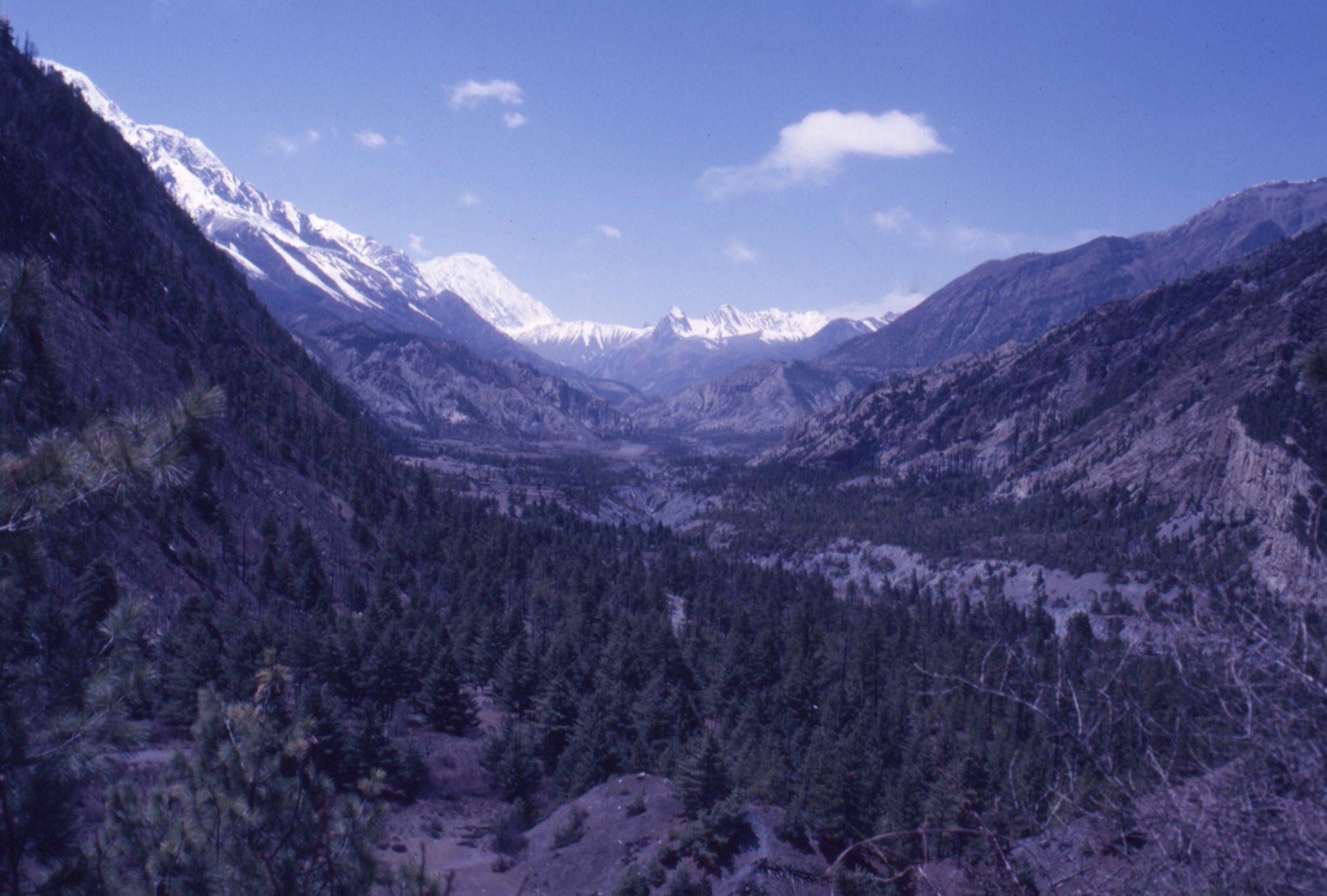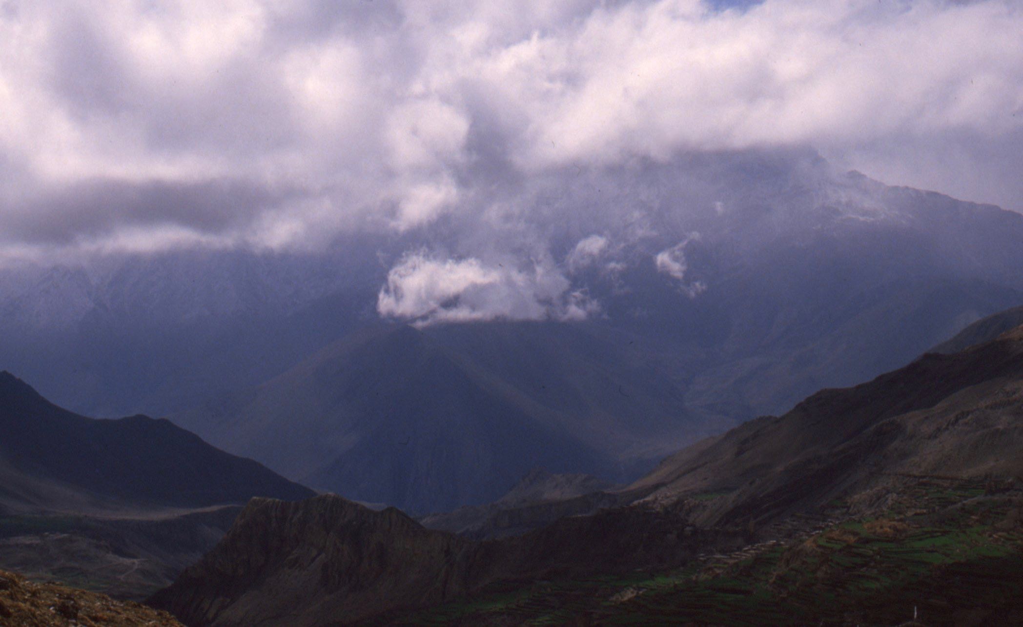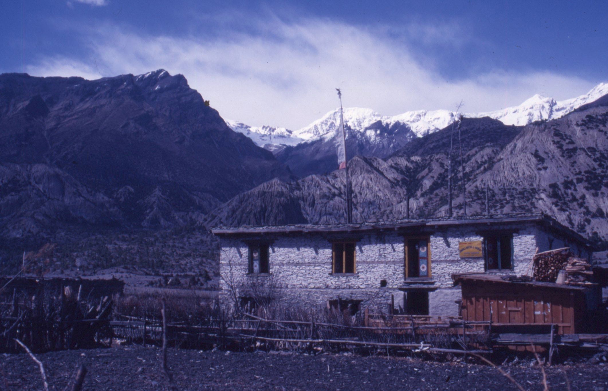 Le surlendemain, j’ai marché de l’aube à la tombée de la nuit, sans doute plus de cinquante kilomètres, avec près de deux mille mètres de dénivelée positive, car il fallait à nouveau franchir un col après avoir atteint le fond de la vallée. Cette dernière avait la réputation d’être la plus profonde au monde, coincée entre les Annapurnas et le Dhaulagiri qui dépassent tous deux les huit mille. Arrivé au lodge, j’y fis la connaissance d’une jeune américaine sourde et muette, avec laquelle je communiquais par petits billets. Elle faisait le Tour en solo.