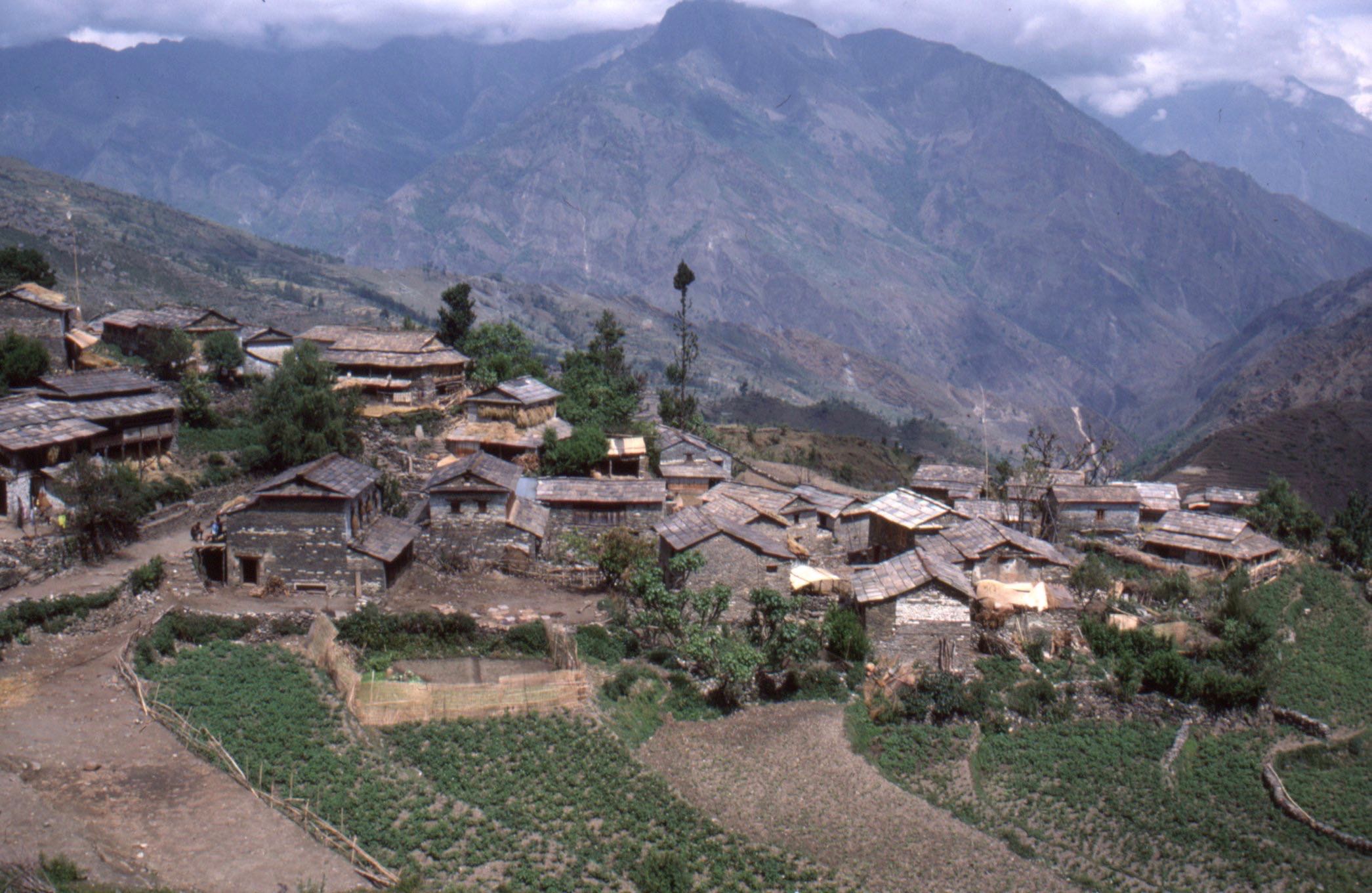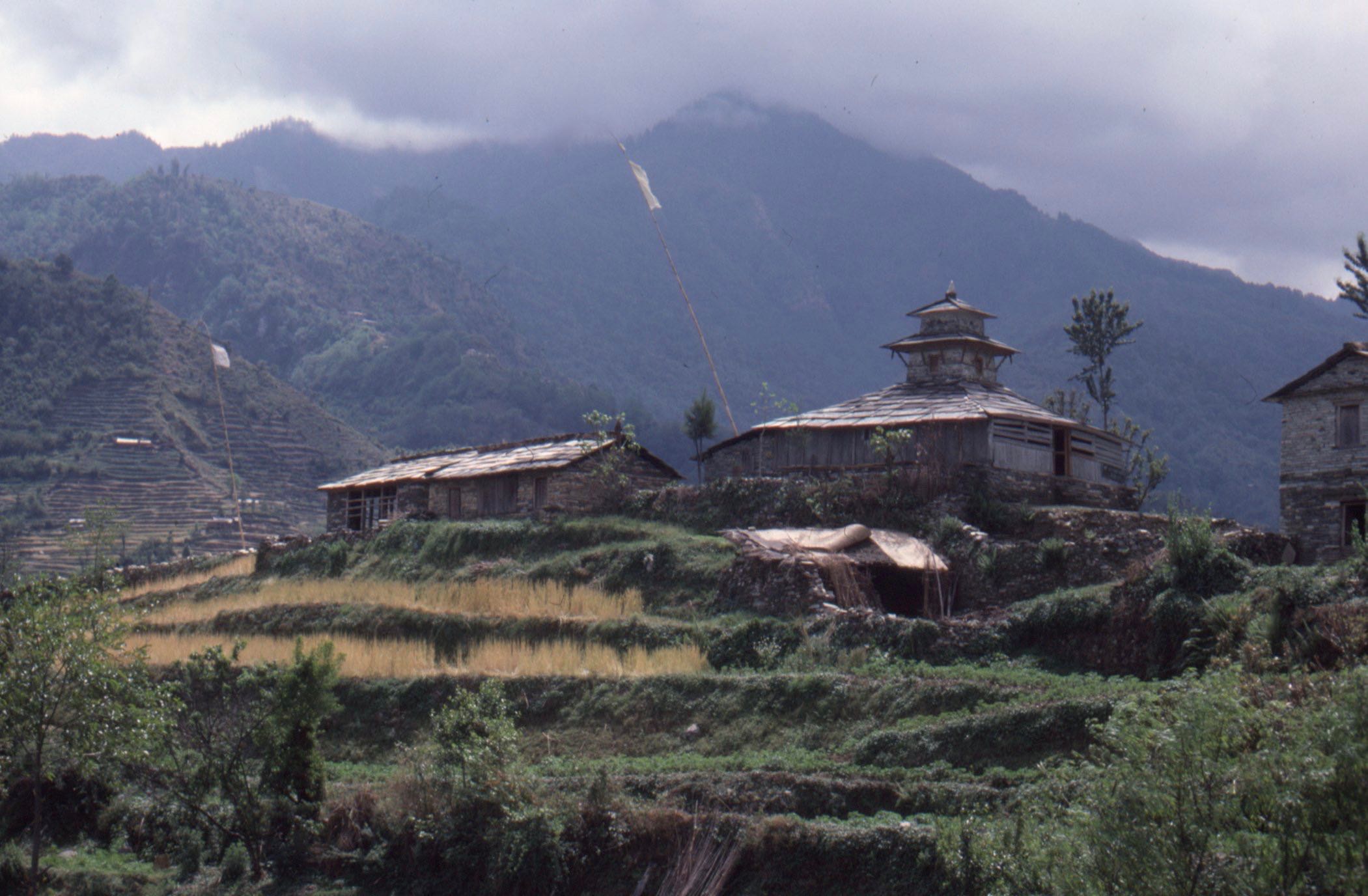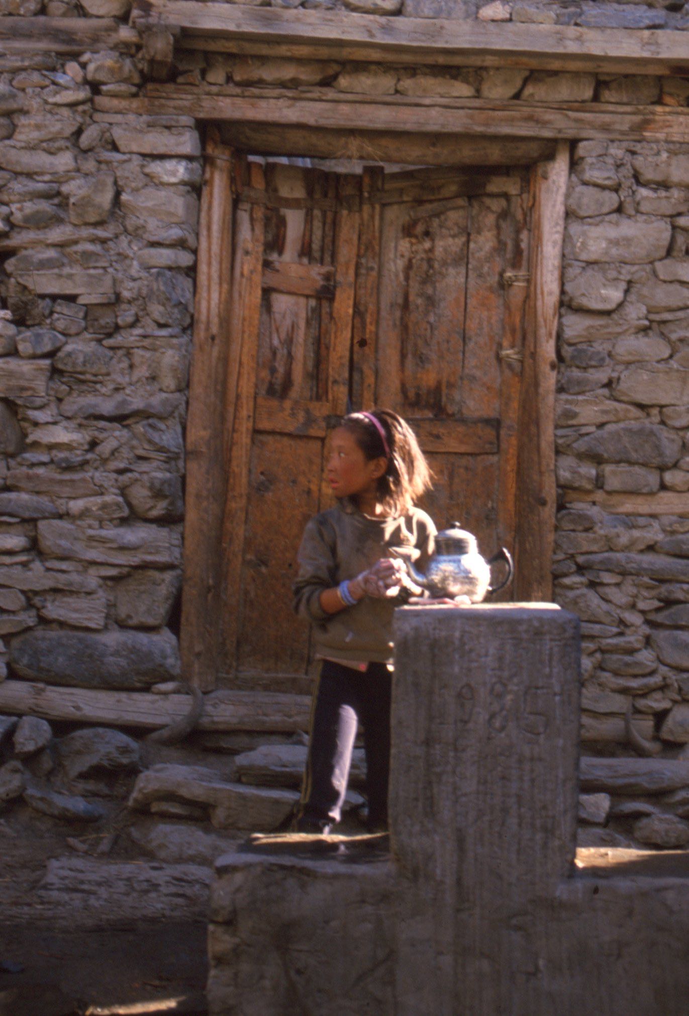 Une frontière bien visible, malgré le métissage lent des ethnies et les échanges verticaux des marchandises, à pied ou avec des caravanes de mulets, était celle qui séparait le monde hindouiste du monde bouddhiste de culture tibétaine. Nous logions dans un des derniers villages vénérant Shiva, Krishna ou Vishnou quand éclata une fête colorée, un peu inquiétante. Il ne s’agissait pas de la « fête des couleurs » ou Holi, célébrant l’arrivée du printemps, car nous étions en automne, la période des fêtes de Dasain et de Tihar. Le village fut comme pris de folie tourbillonnante, dans un nid d’aigle entouré de parois verticales. Les deux voyageurs ébahis se tinrent prudemment à la lisière du sabbat.