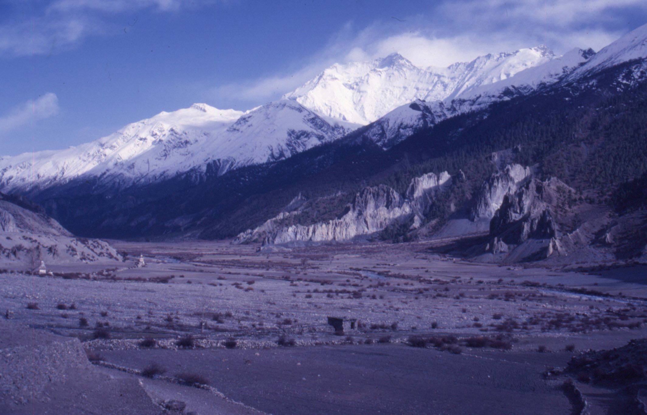 Il était d’usage dans les classes dominantes anglaises, dès la fin du XVIe siècle, d’encourager les jeunes générations à réaliser un voyage en Europe pour leur édification culturelle et morale. Ce voyage un peu initiatique était appelé « The Grand Tour », d’où provient notre mot « tourisme », sa pratique itinérante originelle avant de devenir plus sédentaire. Elle fut d’abord élitiste, puis irrigua progressivement les couches sociales et les nations du monde. Dans la seconde moitié du XXe siècle, de nouveaux pays se sont ouverts au tourisme, dont une partie du Népal en 1951, puis ensuite la région des Annapurnas dans les années 1970. Deux montagnards belges, Jean et Danielle Bourgeois, sont partis marcher autour de ce massif. Danielle en écrira le récit dans Deux lotus en Himalaya paru en 1977, un livre que j’avais lu avec passion à l’époque. Mis en appétit par une traversée pédestre des Alpes, des ascensions en France et en Turquie, une pratique de l’escalade, je me mis à penser à l’Himalaya. Il n’était pas dans mes goûts de participer à un voyage organisé ; mon budget était maigre, j’aimais la liberté et avais l’expérience de la montagne. Le livre de Danielle Bourgeois me décida de partir en solo dans les années quatre-vingt, mais l’aventure, comme il se doit, comporta des imprévus. Tels un compagnon de voyage surgi en dernière minute et un grave accident de santé au pied du col de Thorong, le verrou du Tour des Annapurnas.