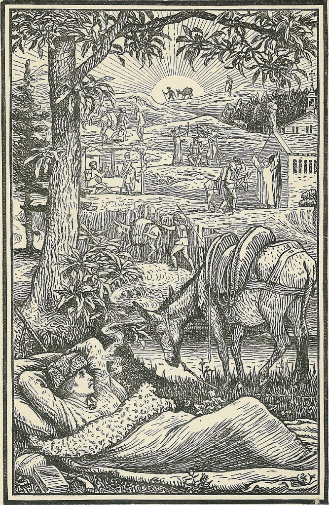 « Hélas, tandis que nous avançons dans la vie, et que nos affaires nous préoccupent de plus en plus, il nous faut travailler même pour nos loisirs. Maintenir les ballots sur un bât contre les rafales glacées du nord n’est pas un grand travail. Mais cette industrie sert à calmer et occuper notre esprit. Quand le présent est si absorbant, qui peut se tracasser de l’avenir ? »
