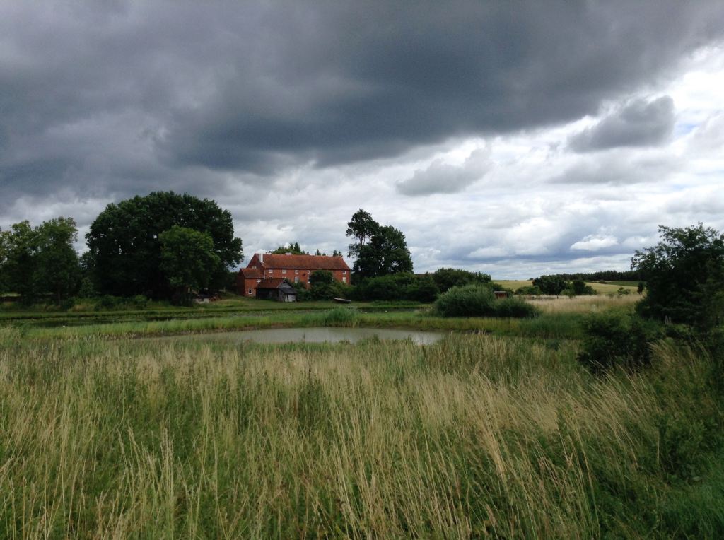 L’itinéraire à suivre, pointé par une flèche blanche sur l’écran, quitte soudainement la route pour emprunter un chemin de terre se dirigeant droit vers une forêt. Dans un premier temps, confiants dans l’exactitude du GPS, nous poursuivons notre course sous les arbres, mais l’étroitesse de la piste, son caractère boueux et forestier nous fait douter. La journée fut très longue depuis la frontière allemande, le soir tombe et un bivouac sous les arbres ne nous tente guère. Nous rebroussons chemin après un demi-tour serré sous les pins, tentons de trouver le village de Harsz près d’un lac. Nous y  voici. Il a beau être petit, le village, nous ne voyons pas la Stara Szkola (« la vieille école ») qui sera notre gîte pour deux nuits. Au bord de l’eau, un trio de jeunes hommes, visiblement du coin, bavarde et fume. Je leur adresse la parole en anglais, mon polonais étant réduit à cinq mots. Ils ne comprennent pas. Je tente l’allemand. Pas davantage. En désespoir de cause, je risque prudemment le russe. Ils comprennent et nous indiquent le gîte…